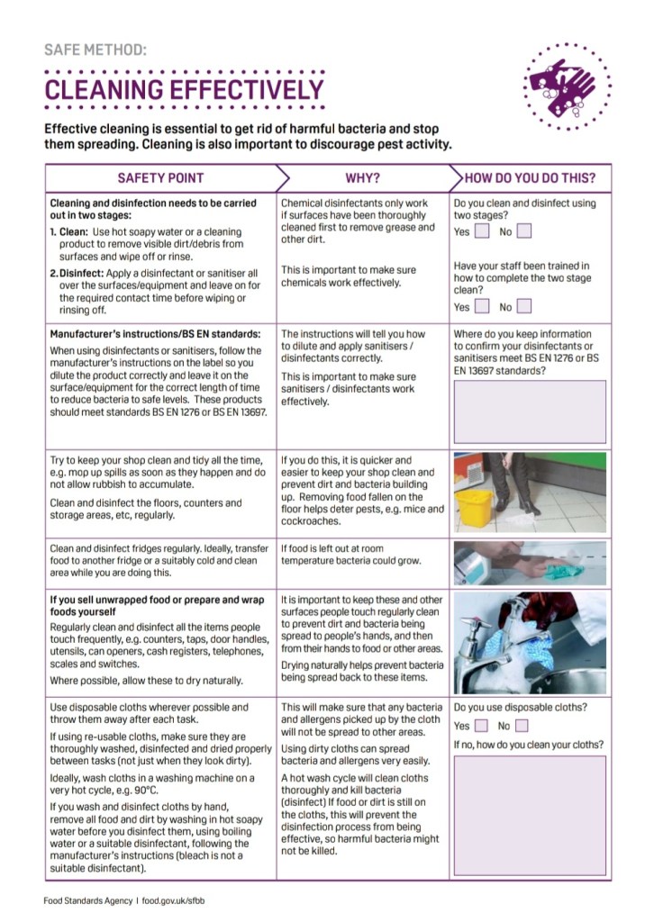 There is also a opening and closing checklist for restaurants to follow which includes a “extra check” section which is part filled but can be added to by the restaurant.