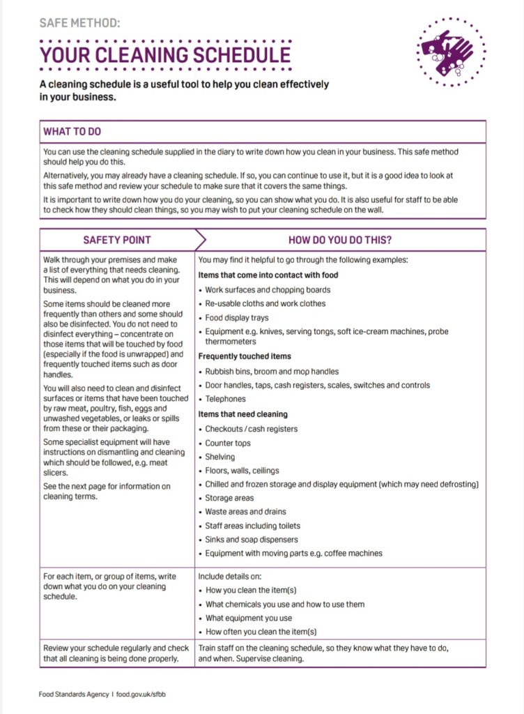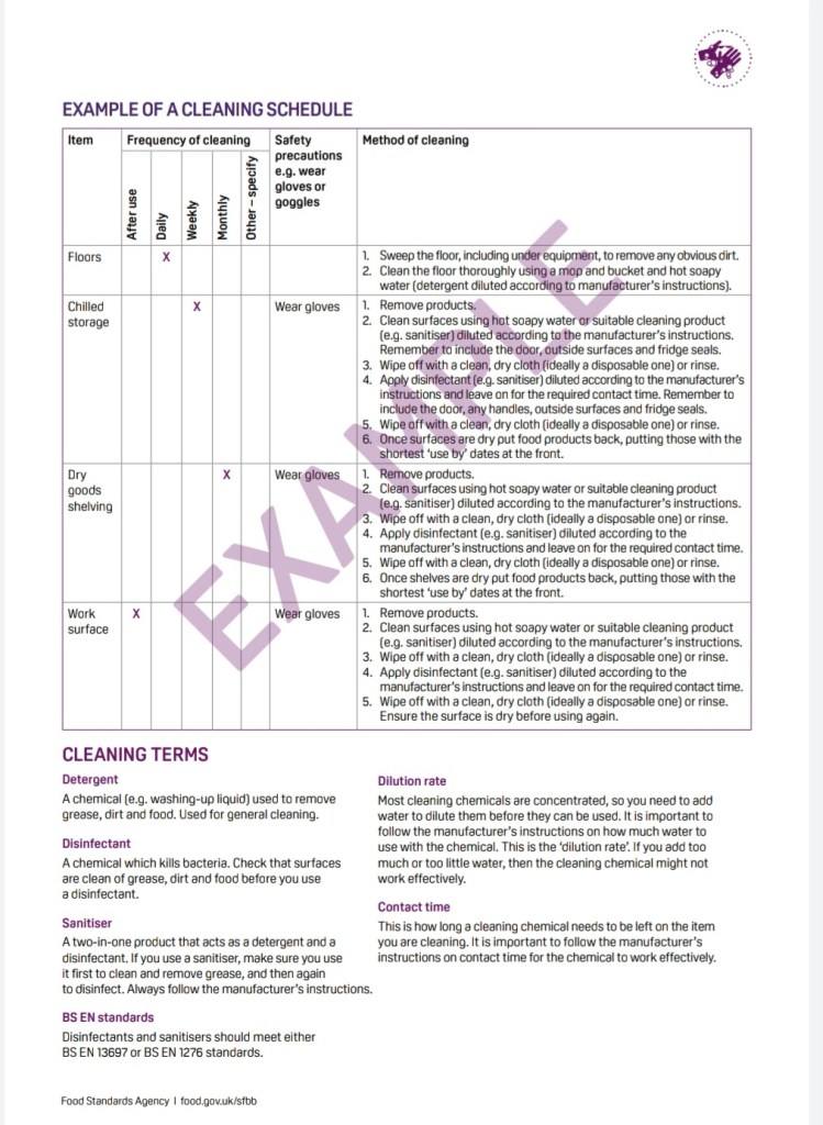 One however I would like to draw to your attention is the Safer food, better business, for caterers guidence (SFBB). This guidence covers several subjects including cleaning and cross-contamination.